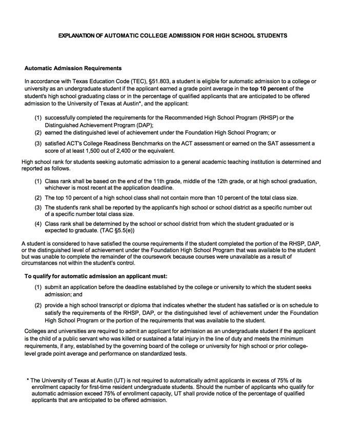 Automatic Admission Policy Texas